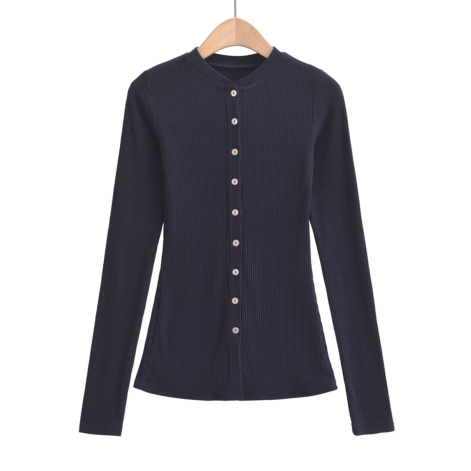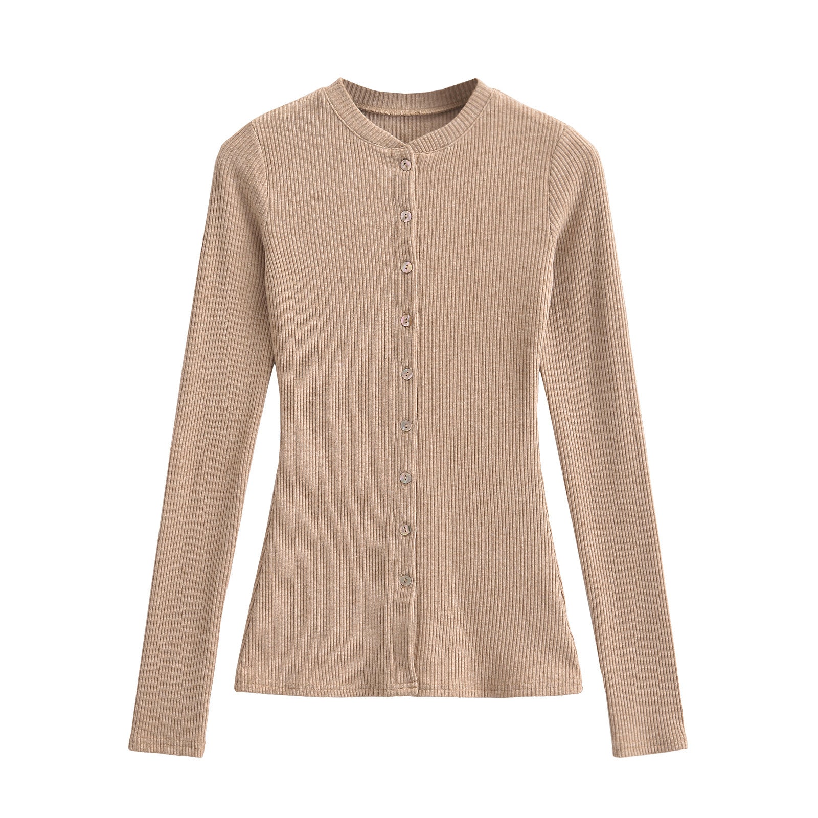 Round neck single breasted slim fit cardigan top